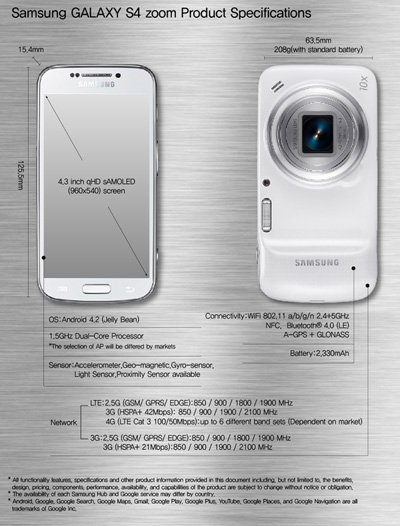 The Android Jelly Bean 4.2 powered Samsung GALAXY S4 zoom, combines the features of the GALAXY S4 smartphone with advanced photographic capabilities.